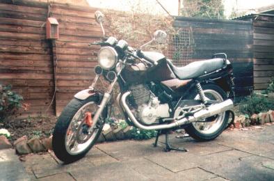 125 (and a dodgy haircut). Within a year or so I was bored, and craved power, but instead I did a straight swap with a local shop for a Honda XBR500. Don't knock it, it took the pair of